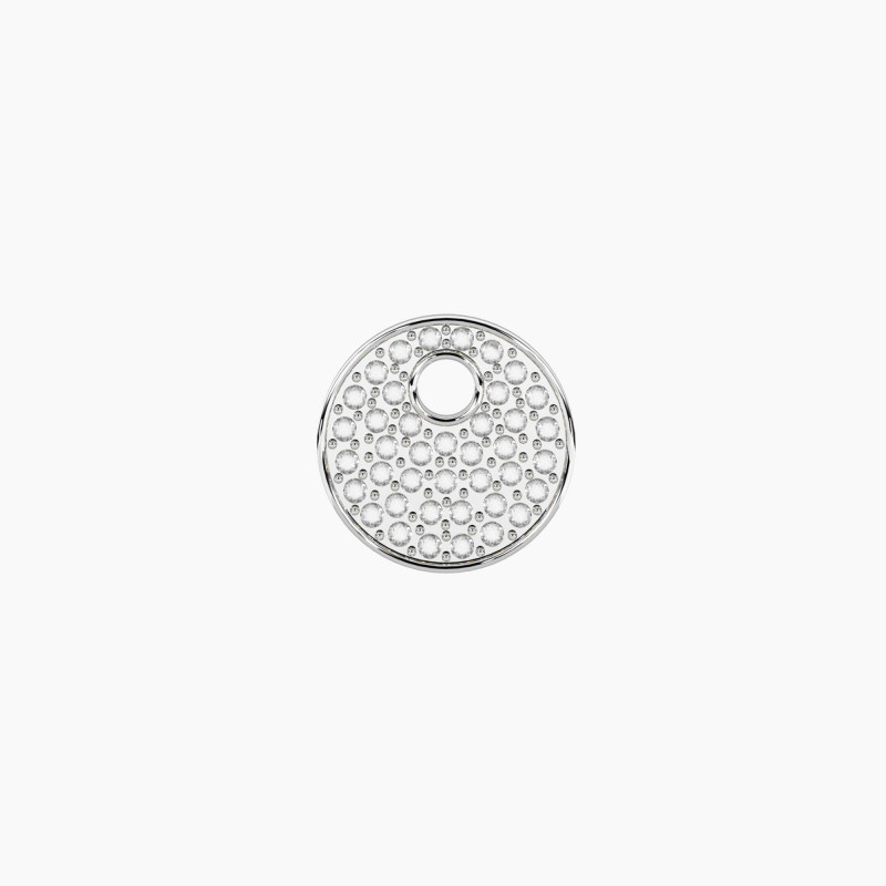 ciondolo tondo per orecchini in acciaio e cristalli.