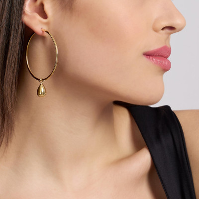 mono orecchino componibile a cerchio da donna in acciaio dorato