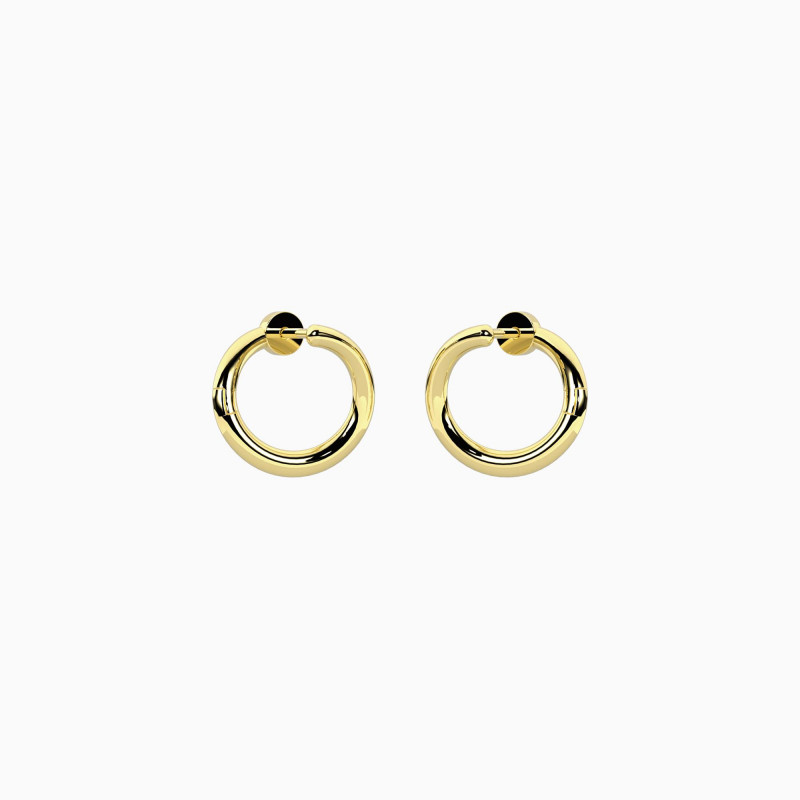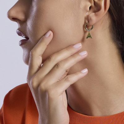 orecchini donna a cerchio componibili pendenti in acciaio e pvd giallo. inserisci il tuo charm in ciascun orecchino.