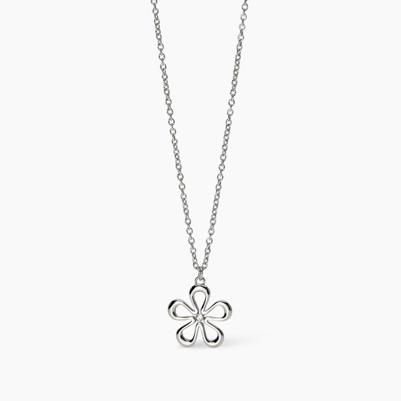 girocollo in acciaio con catena rolò e pendente fiore con cristallo.