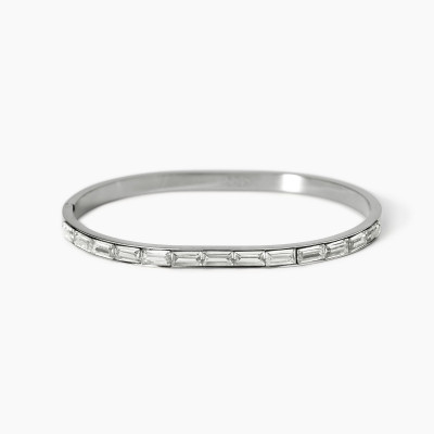 bracciale bangle in acciaio con zirconi taglio baguette.