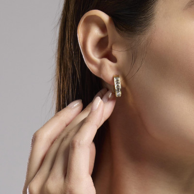 orecchini in acciaio dorati con cristalli taglio baguette.