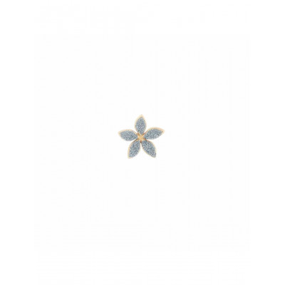 orecchino singolo in oro giallo 18 carati con fiore di dimensioni 6x6 mm. il fiore presenta sulla superficie polvere di diamanti celeste e bordo in oro.