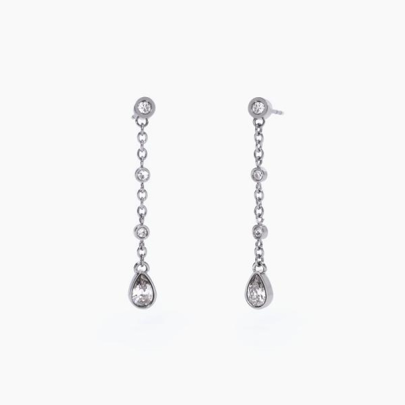 orecchini in acciaio 316L con catena forzatina 2 mm e cristalli taglio goccia 6x4 mm, Ø 2 mm e Ø 2.5 mm, lunghezza totale orecchino 4 cm