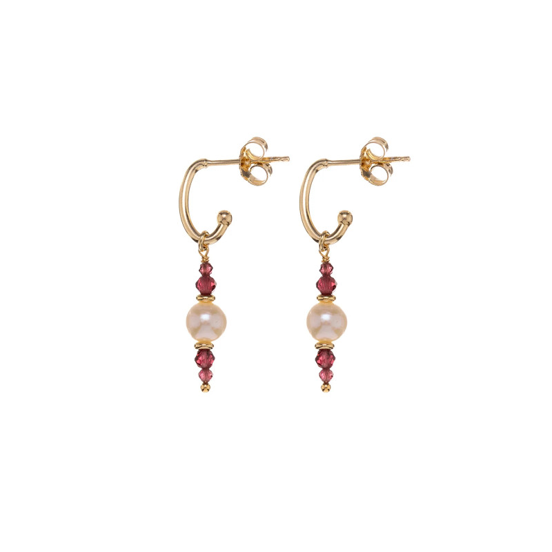 le tonalità calde e avvolgenti del granato si uniscono alla purezza della perla bianca, per un gioiello elegante e timeless.