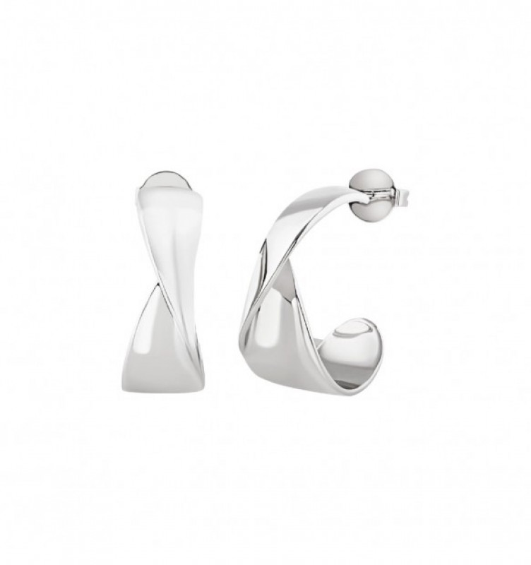 gli orecchini hoop retwist illuminano il viso grazie al design originale che esalta la finitura lucida del gioiello. l'acciaio sembra avvitarsi su se stesso seguendo il profilo del viso e rendendo intrigante e sinuoso l'indosso.