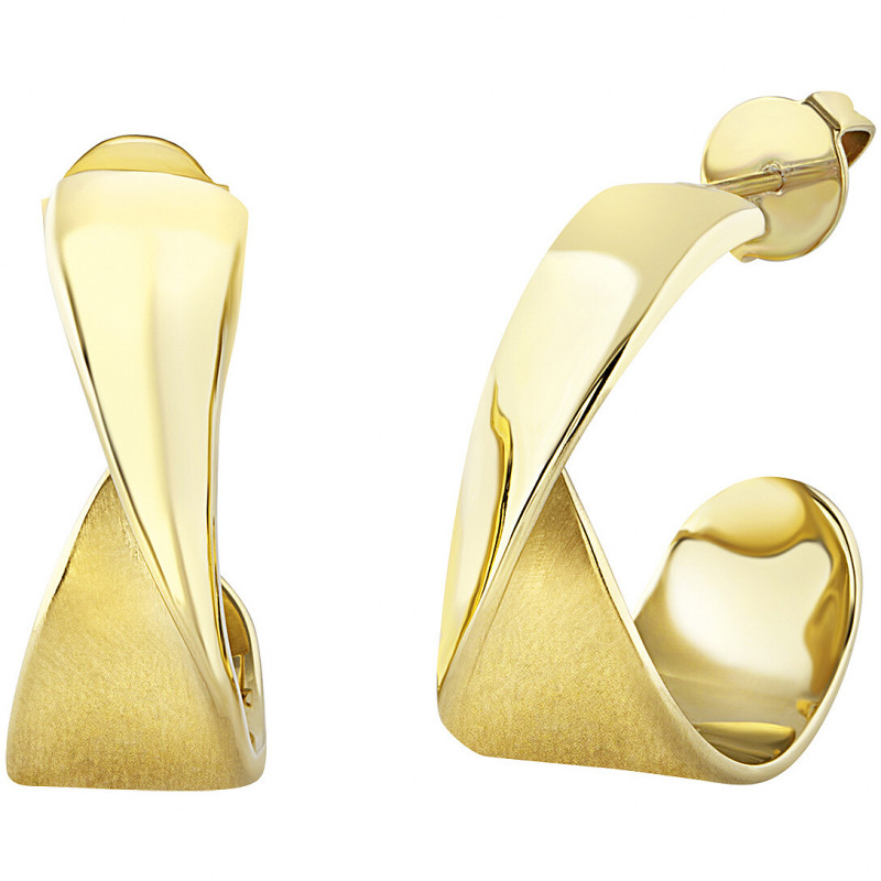 orecchini da donna di breil jewels della collezione retwist. gioiello in acciaio bilux ip gold a forma fluida. chiusura a farfalla. dimensioni: 23 mm.