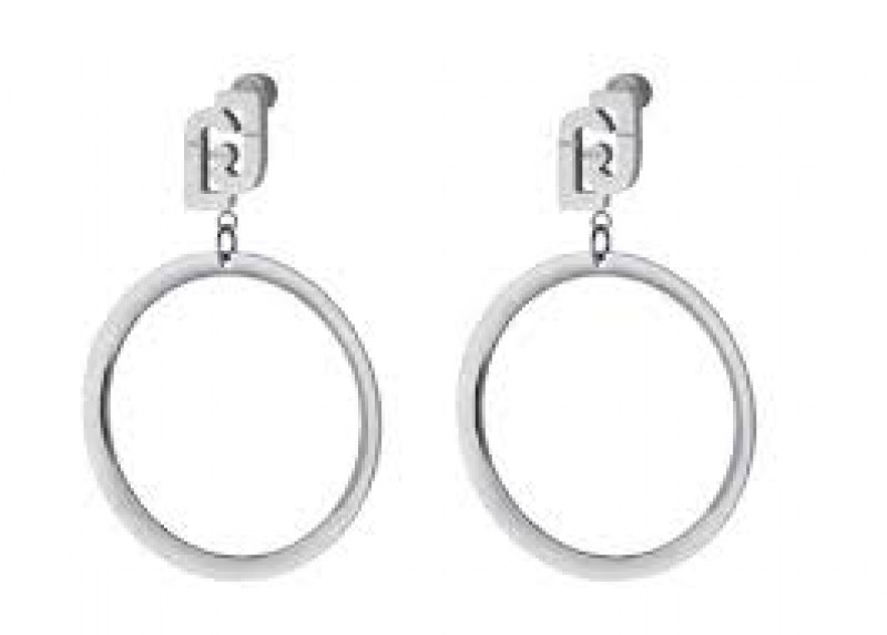 orecchini realizzati in acciaio con logo e cerchio pendente