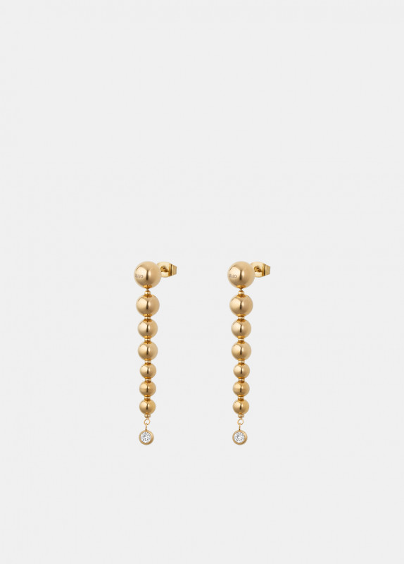 orecchini realizzati in acciaio gold pendente e zirconi, lunghezza 5cm