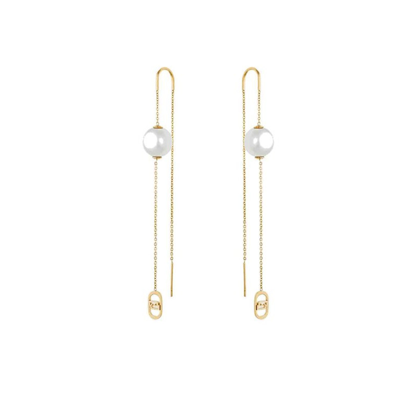 orecchini realizzati in acciaio gold pendente e perla, lunghezza 9cm