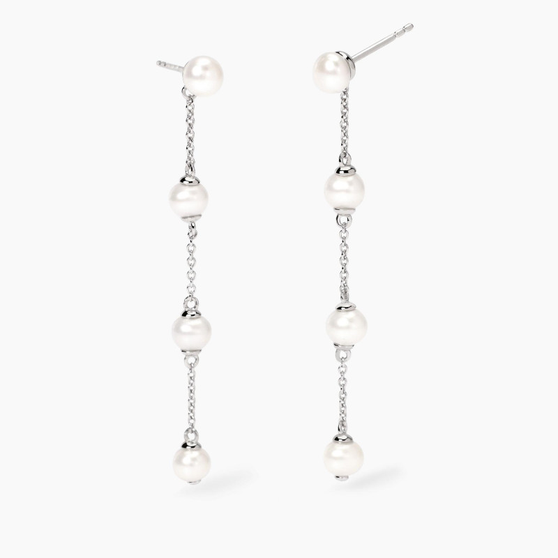orecchini pendenti in argento rodiato con perle coltivate bottone e potato.