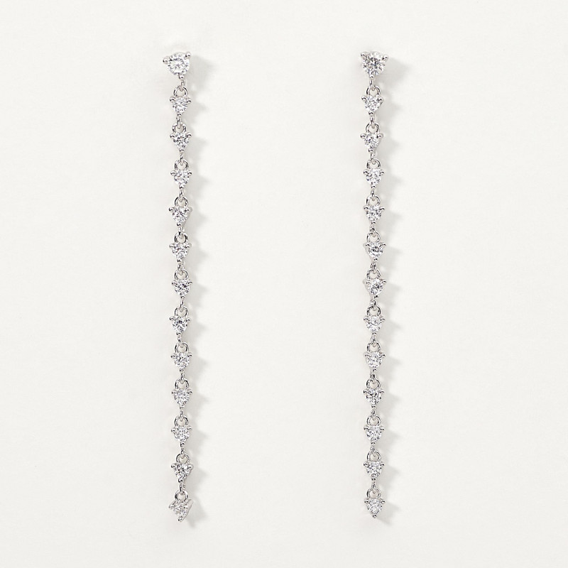 Orecchini in argento con pendente tennis in zirconi.• Incastonatura degli zirconi a griffe