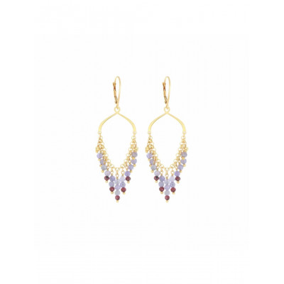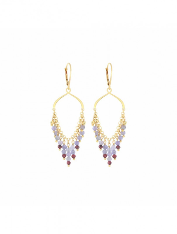 coppia di orecchini monachella con pietre di tanzanite e granato sfaccettate pendenti.