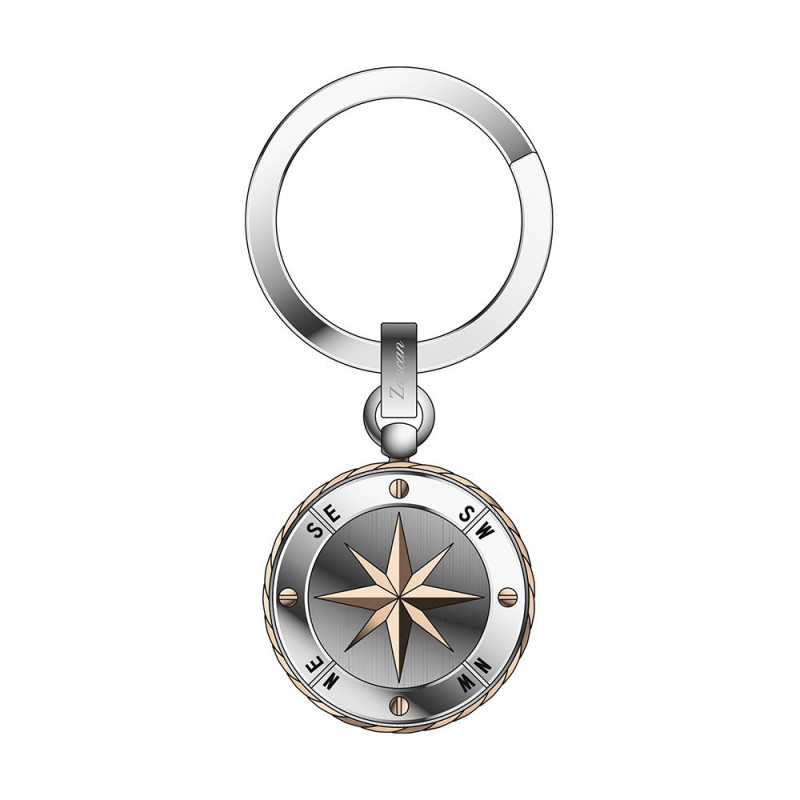 portachiavi in acciaio e pvd rosa con rosa dei venti